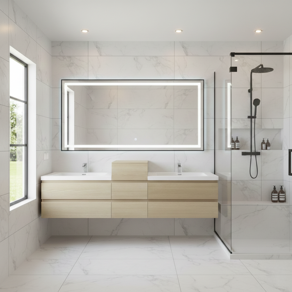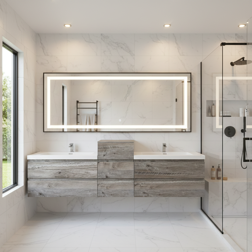 Amber 104“ Double Sink Floating Bathroom Vanity