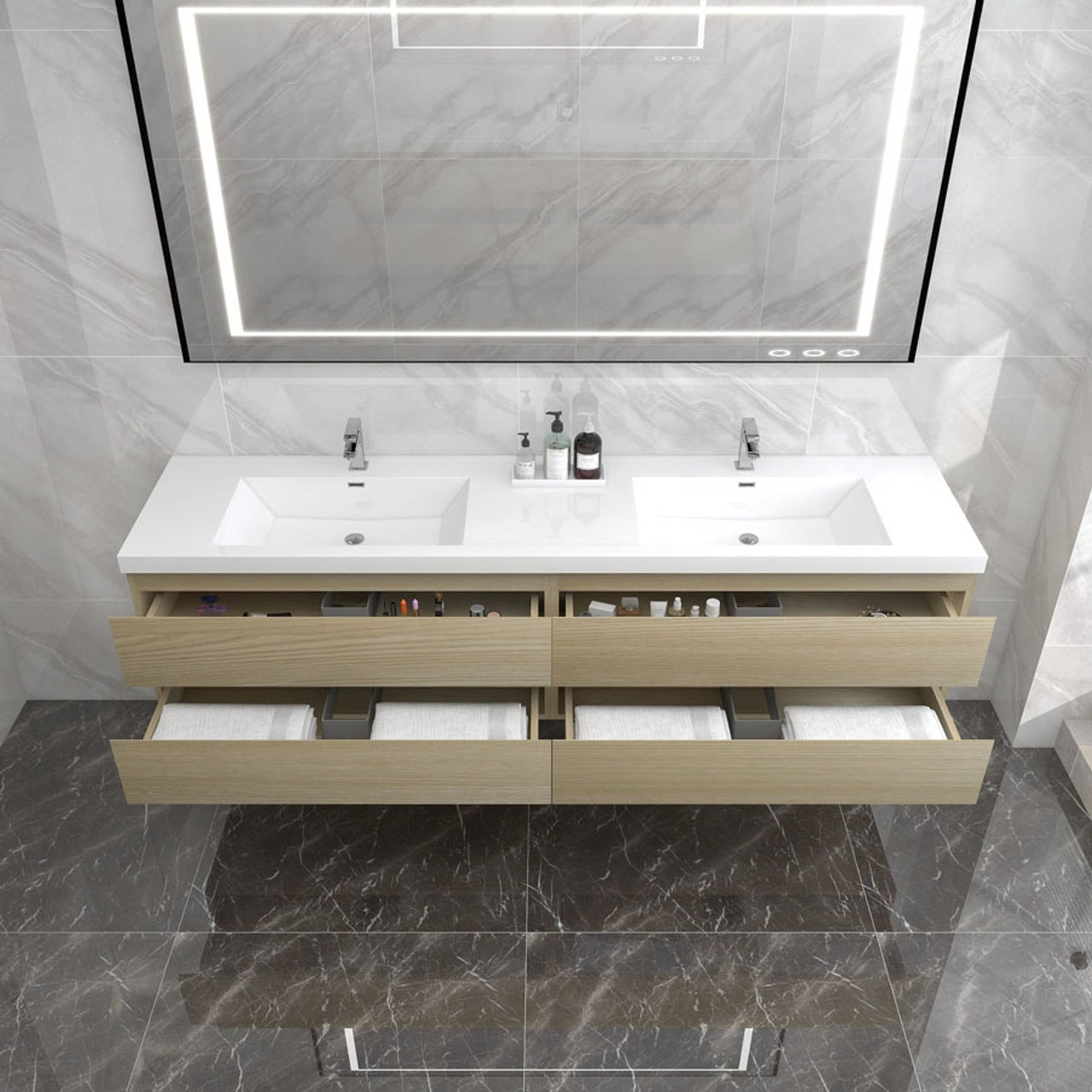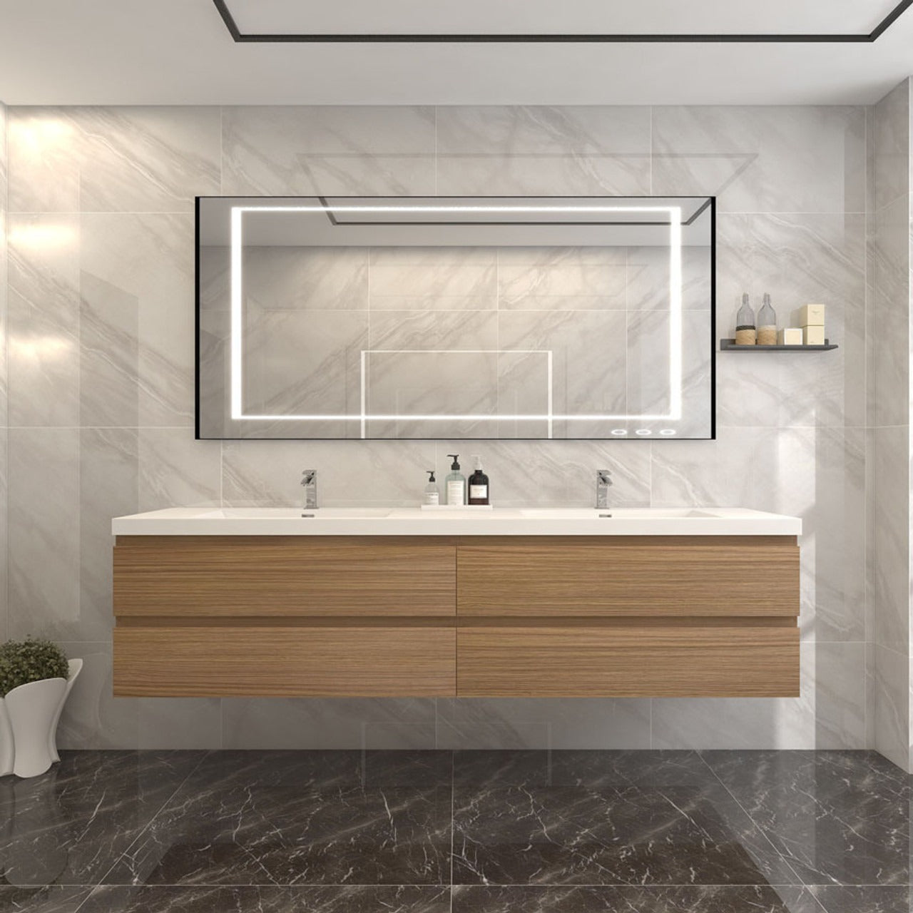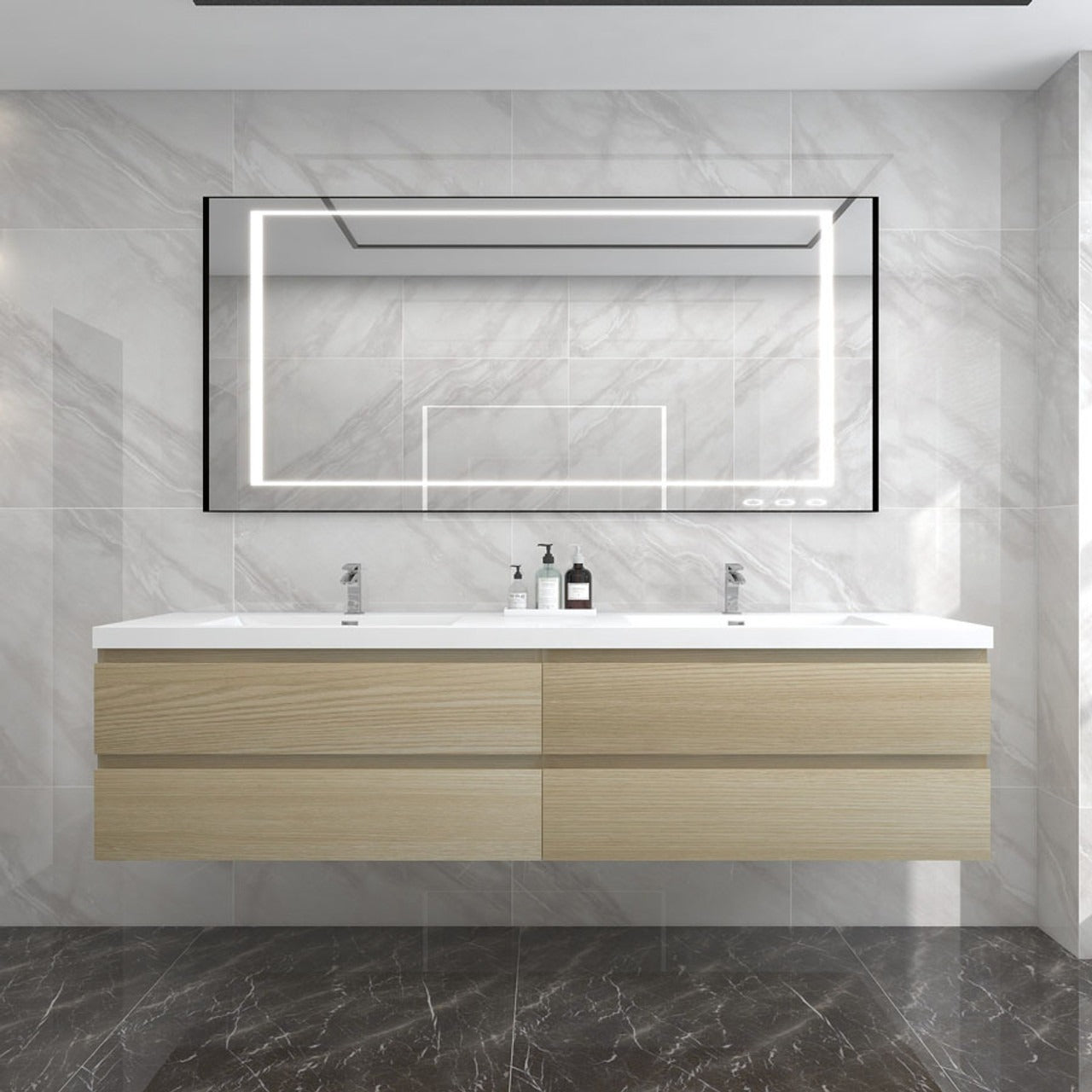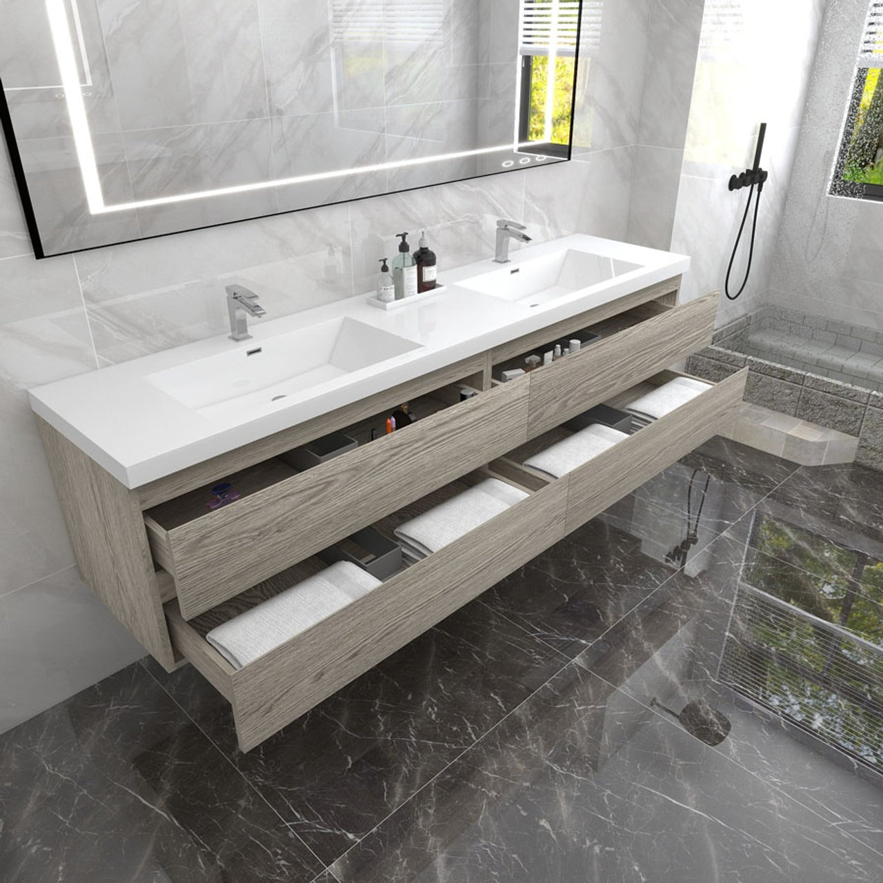 Amber 84“ Double Sink Floating Bathroom Vanity