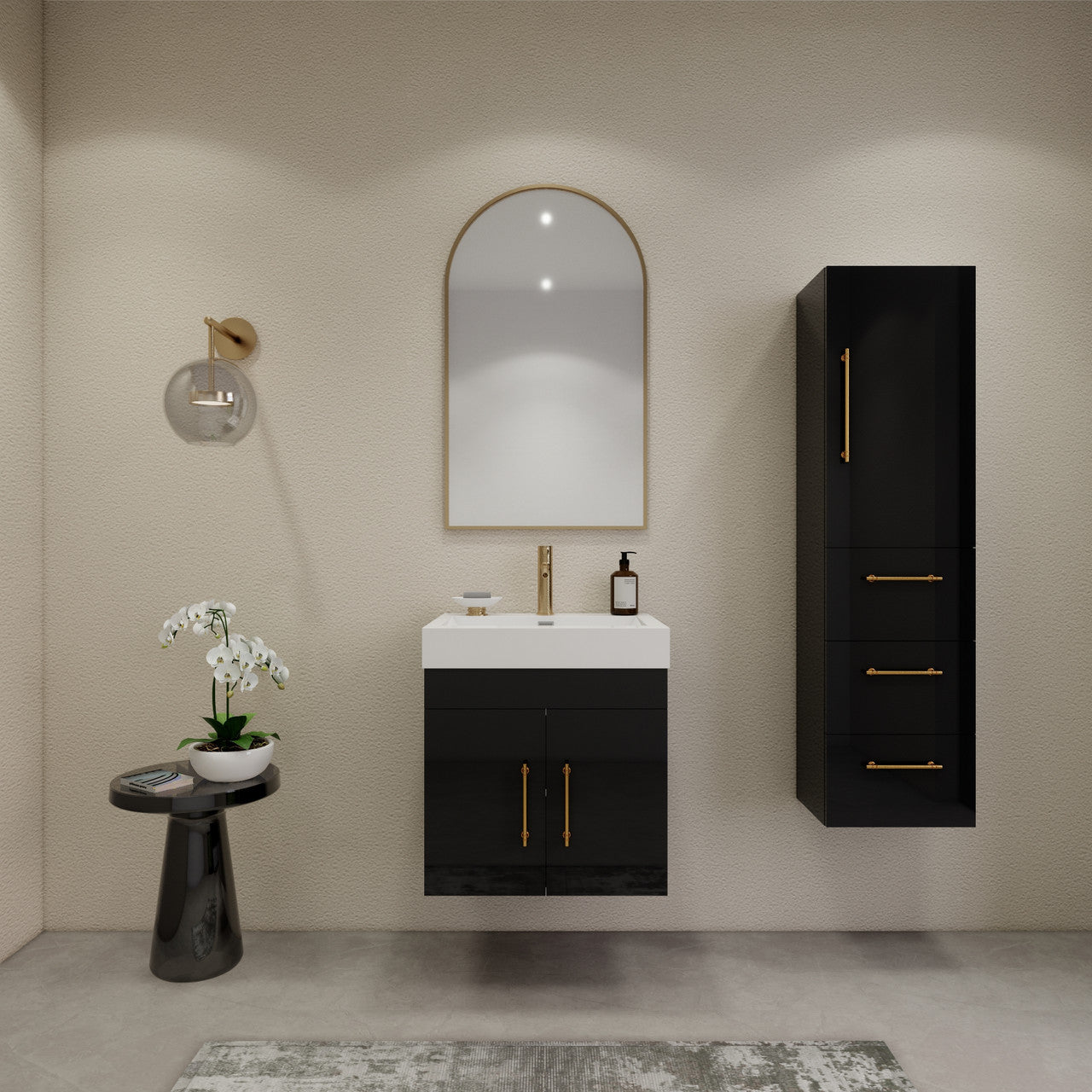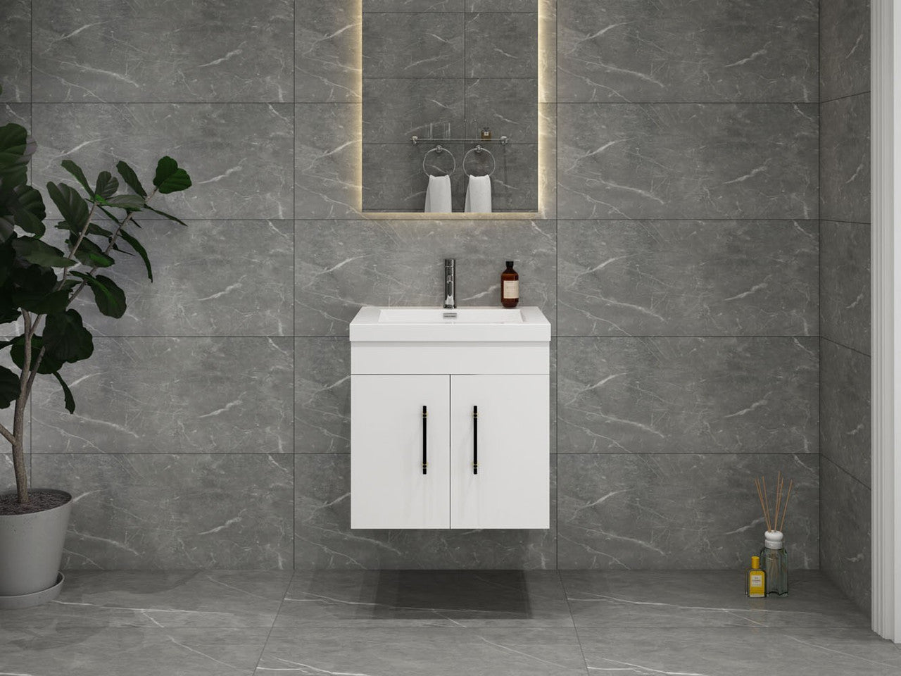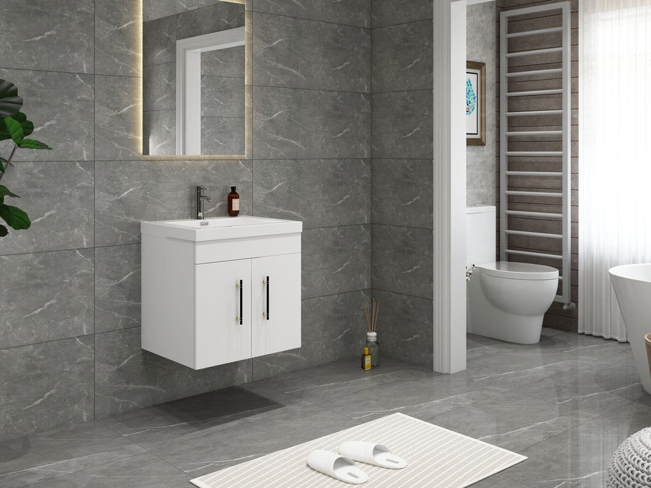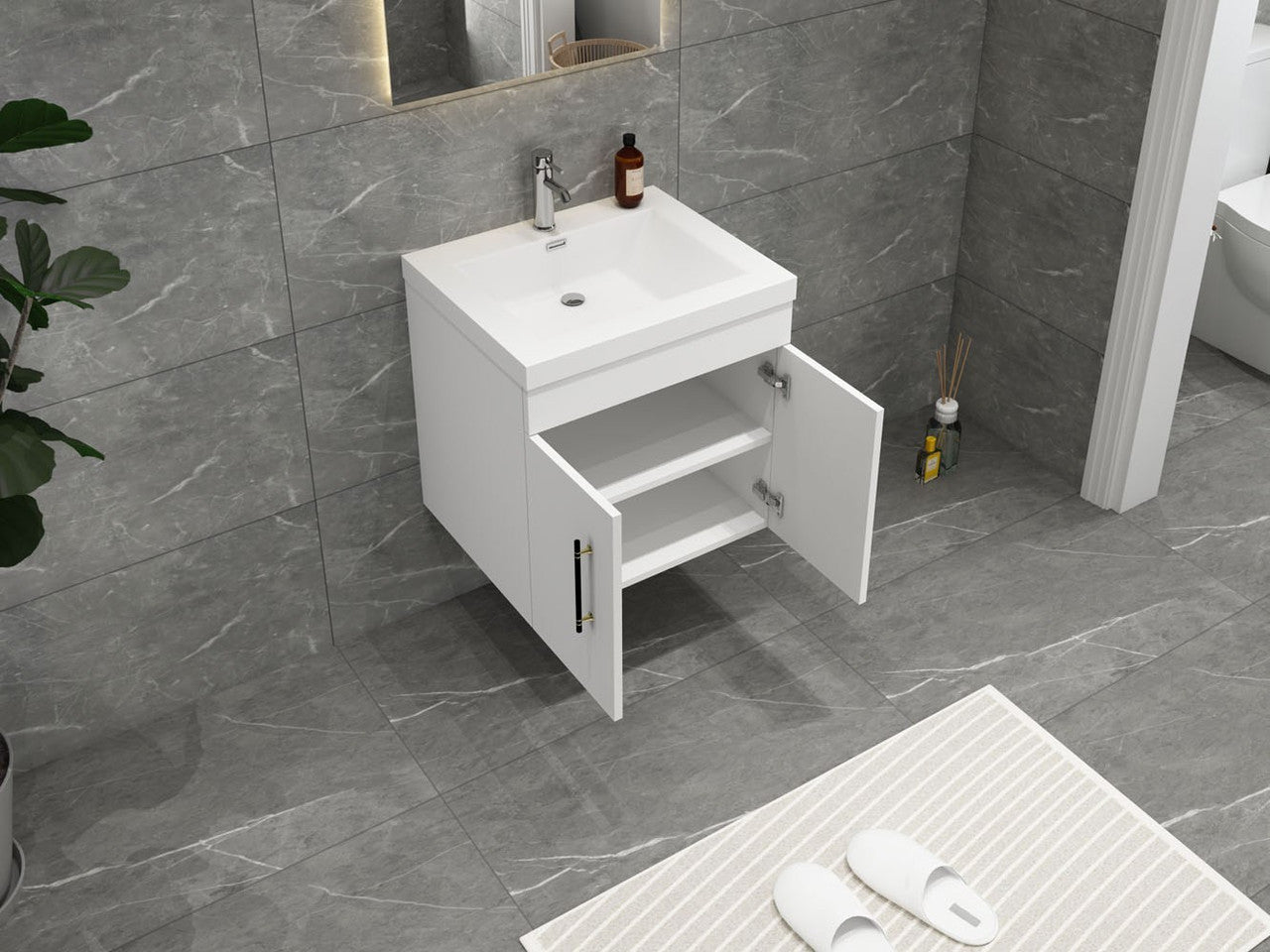 A seamless blend of functionality and chic design to upgrade your bathroom. Crafted with contemporary elegance, our Aqua vanity is made of high-quality materials and features a durable, reinforced acrylic countertop that is easy to clean. The doors are equipped with soft-close hinges to prevent slamming and ensure years of trouble-free use. The floating design offers a stylish storage solution that is both space-saving and unique.
