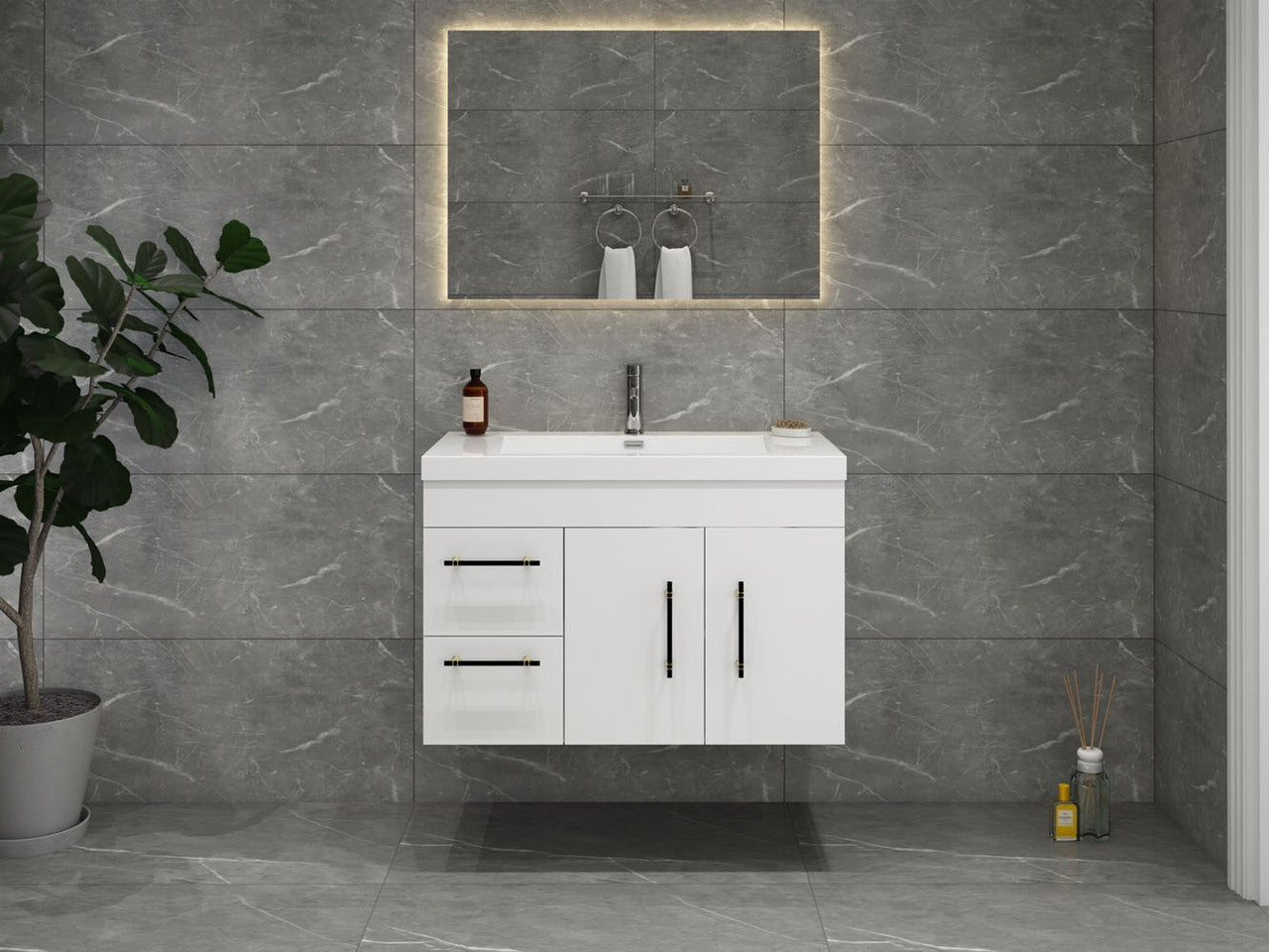 Aqua 36“ Floating Bathroom Vanity (Left Drawers)