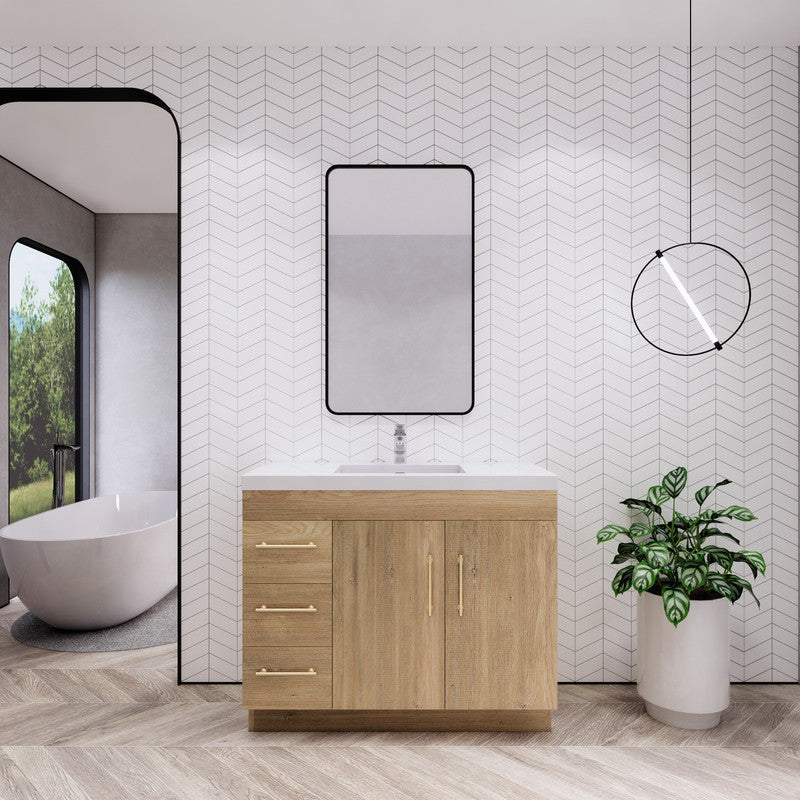 Aqua 42” Single Sink Freestanding Bathroom Vanity (Left Side Drawers)