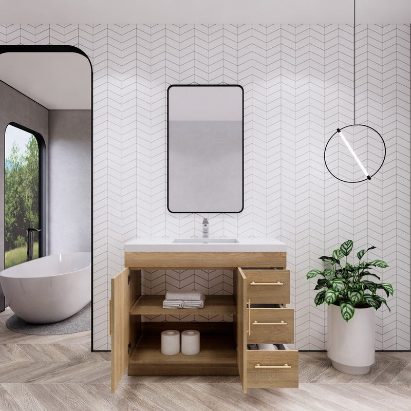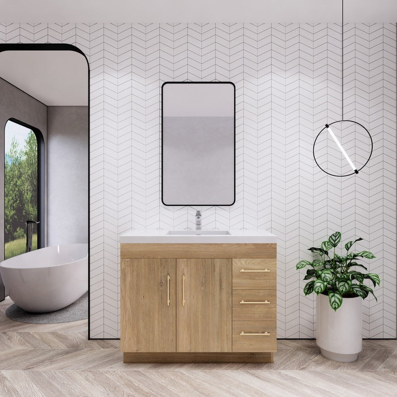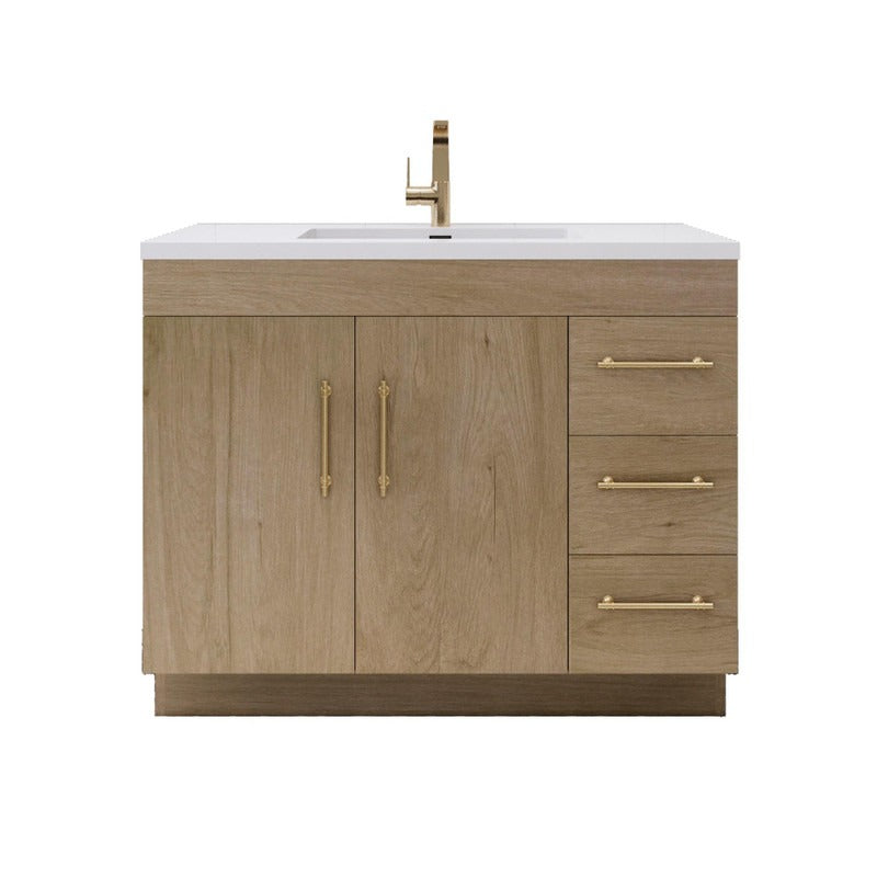 Aqua 42” Single Sink Freestanding Bathroom Vanity (Right Side Drawers)