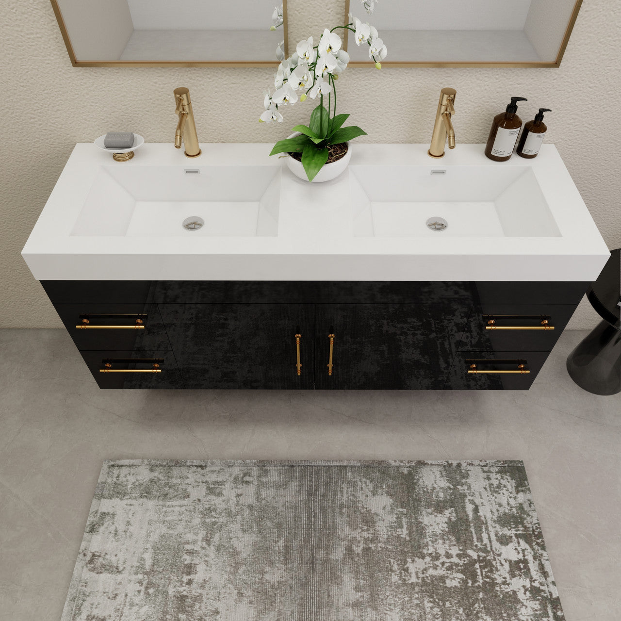 Aqua 60“ Double Sink Floating Bathroom Vanity