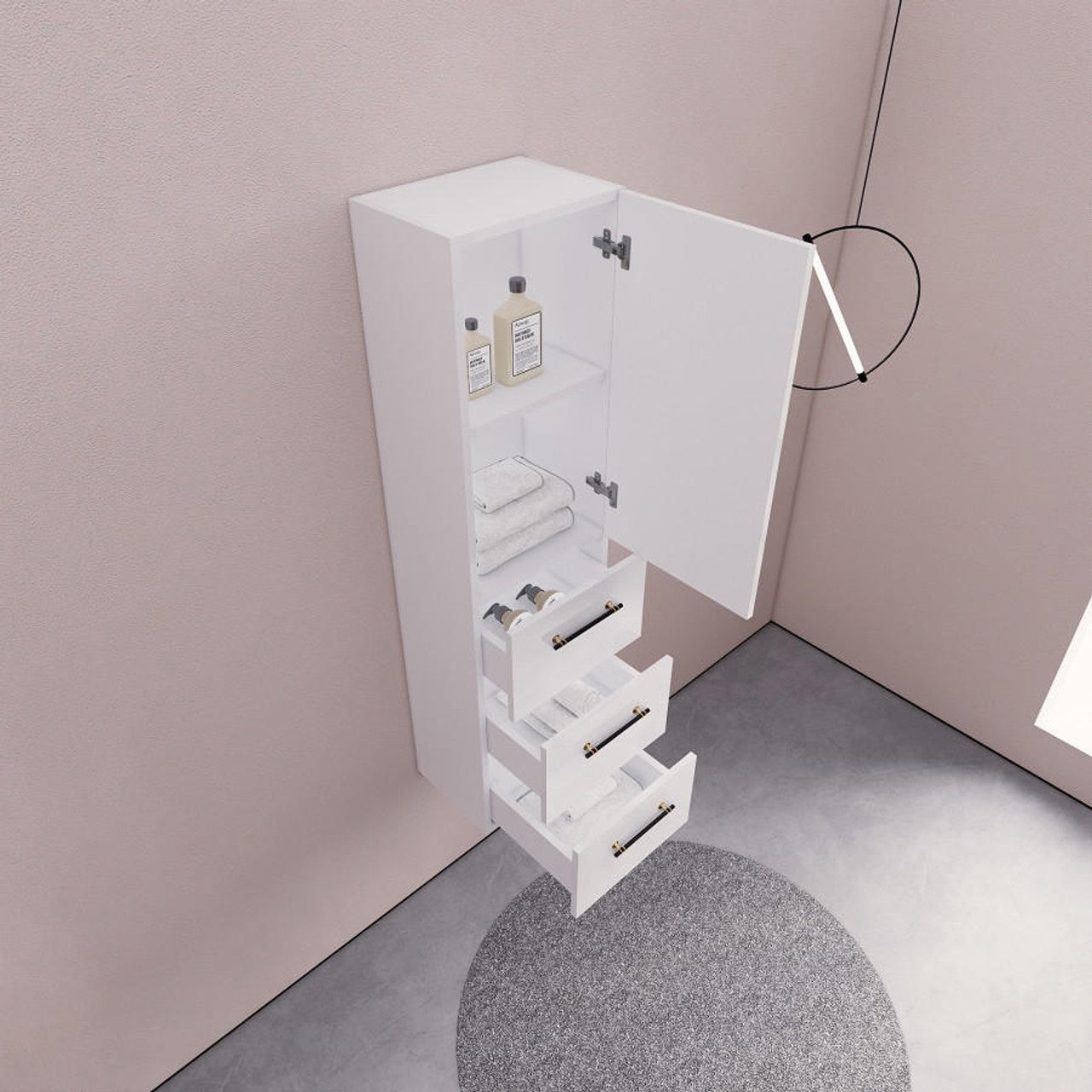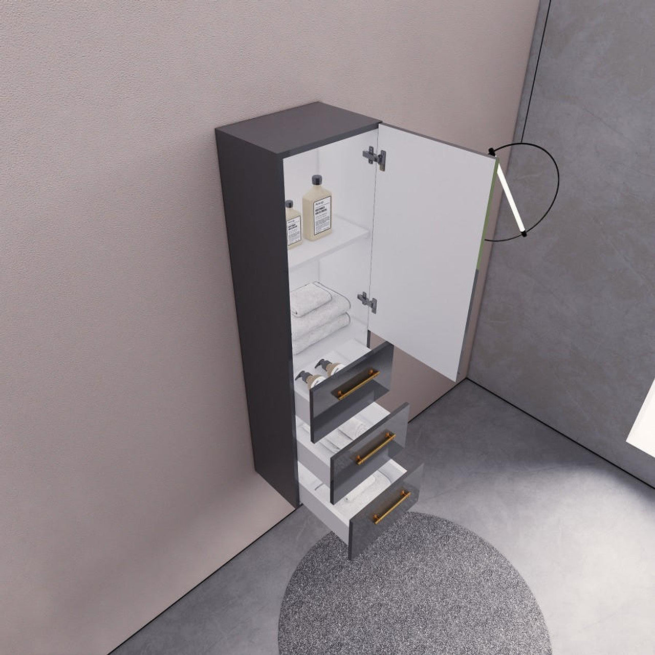 Complement your bathroom's design with our Aqua Collection Modern Linen Cabinet. Designed to pair perfectly with our Aqua vanity collection or to stand alone as a chic addition, featuring a minimalist design and natural wood tones that enhance any contemporary bathroom setting.