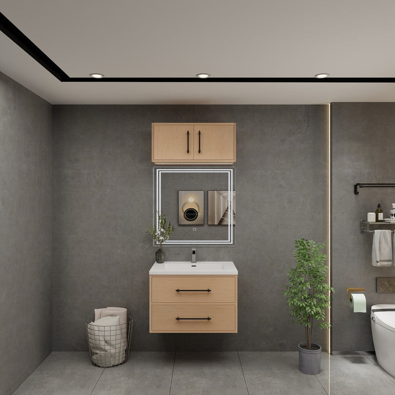 Overhead Floating Cabinets: Matching storage solutions designed to align perfectly above the vanity mirror, offering an uncluttered look and extra space for essentials. Overhead cabinets are sold separately.