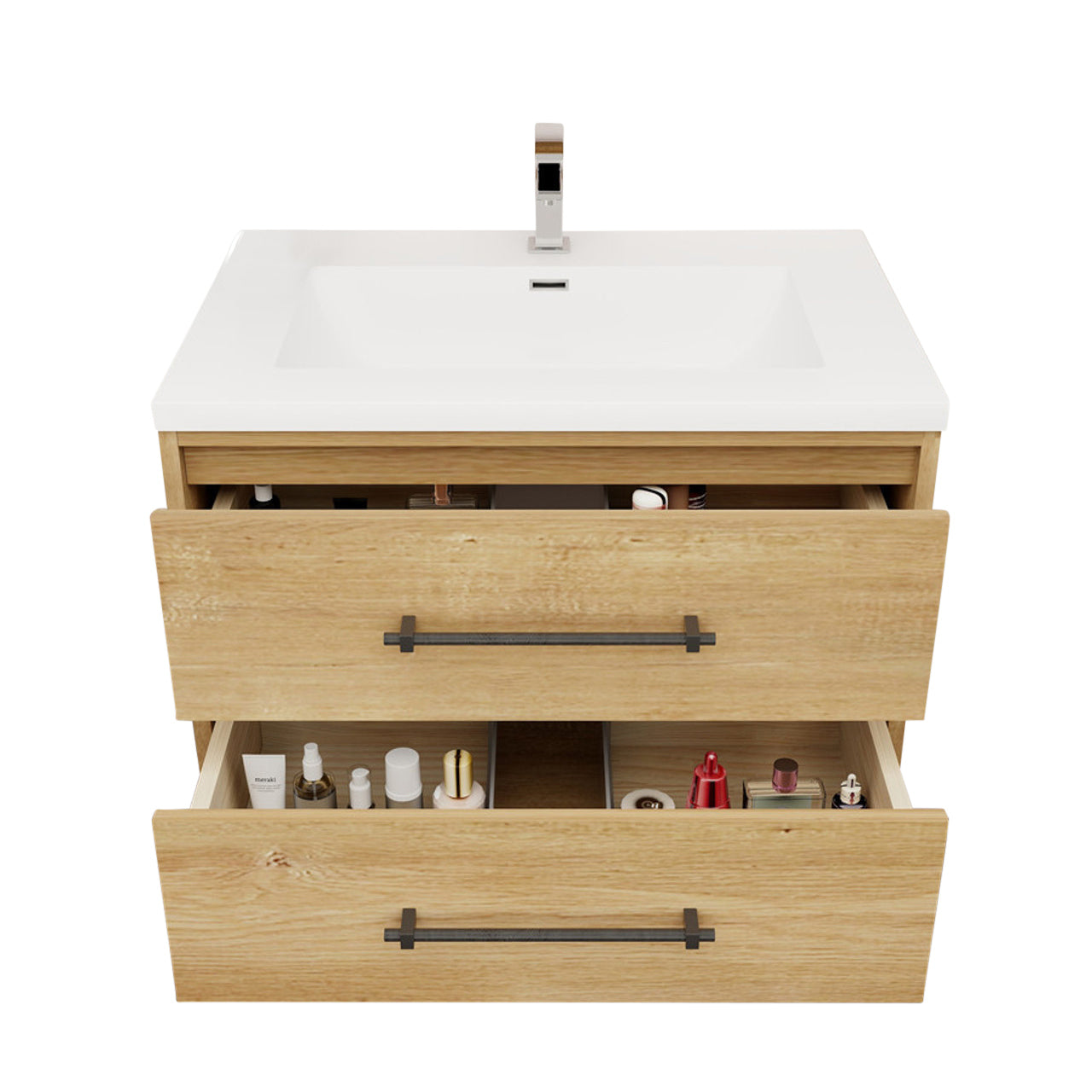 Main Vanity Cabinet: Features European soft-closing drawers that ensure a seamless, whisper-quiet operation.