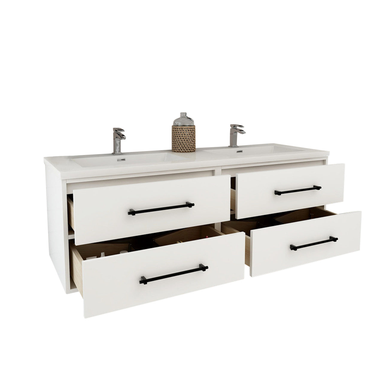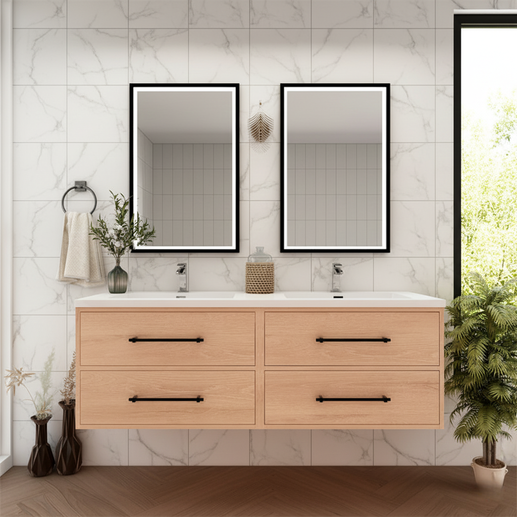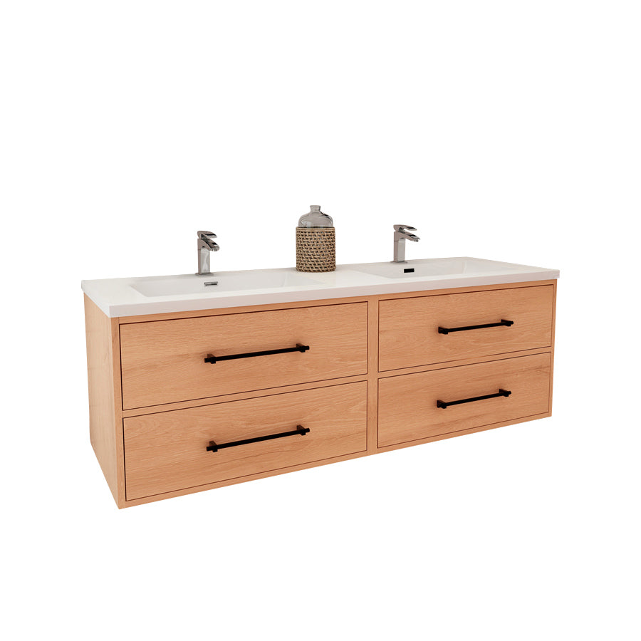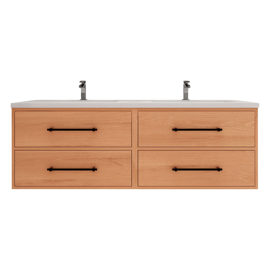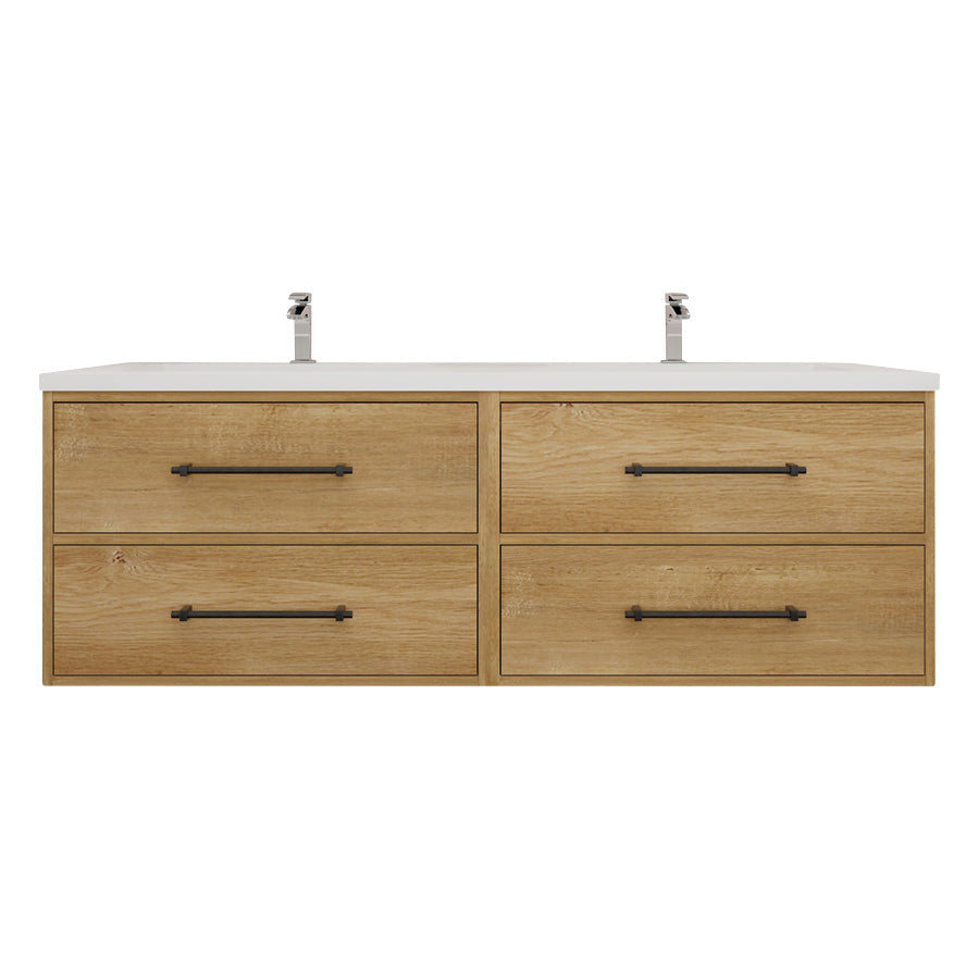 Arezzo 60" Solid Wood Double Sink Floating Bathroom Vanity (4 Drawers)