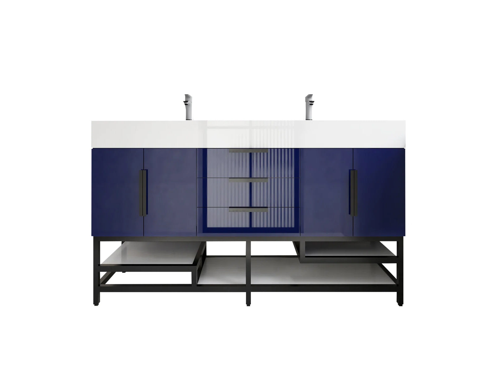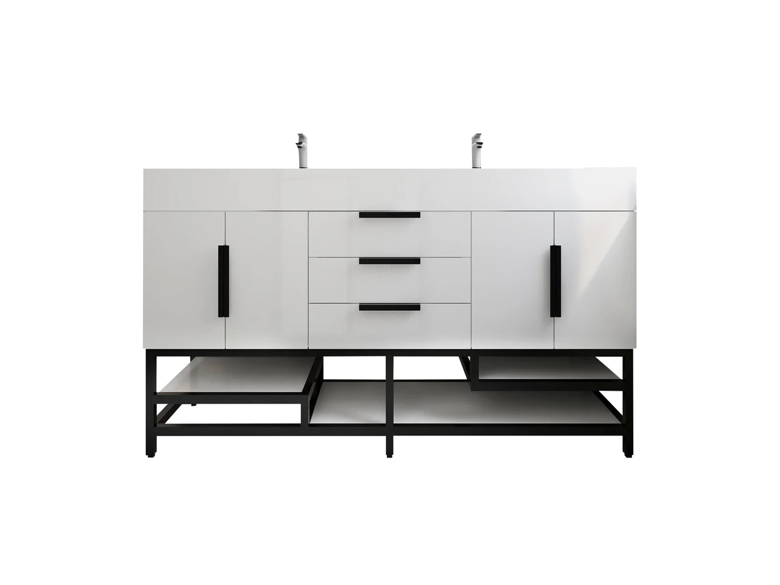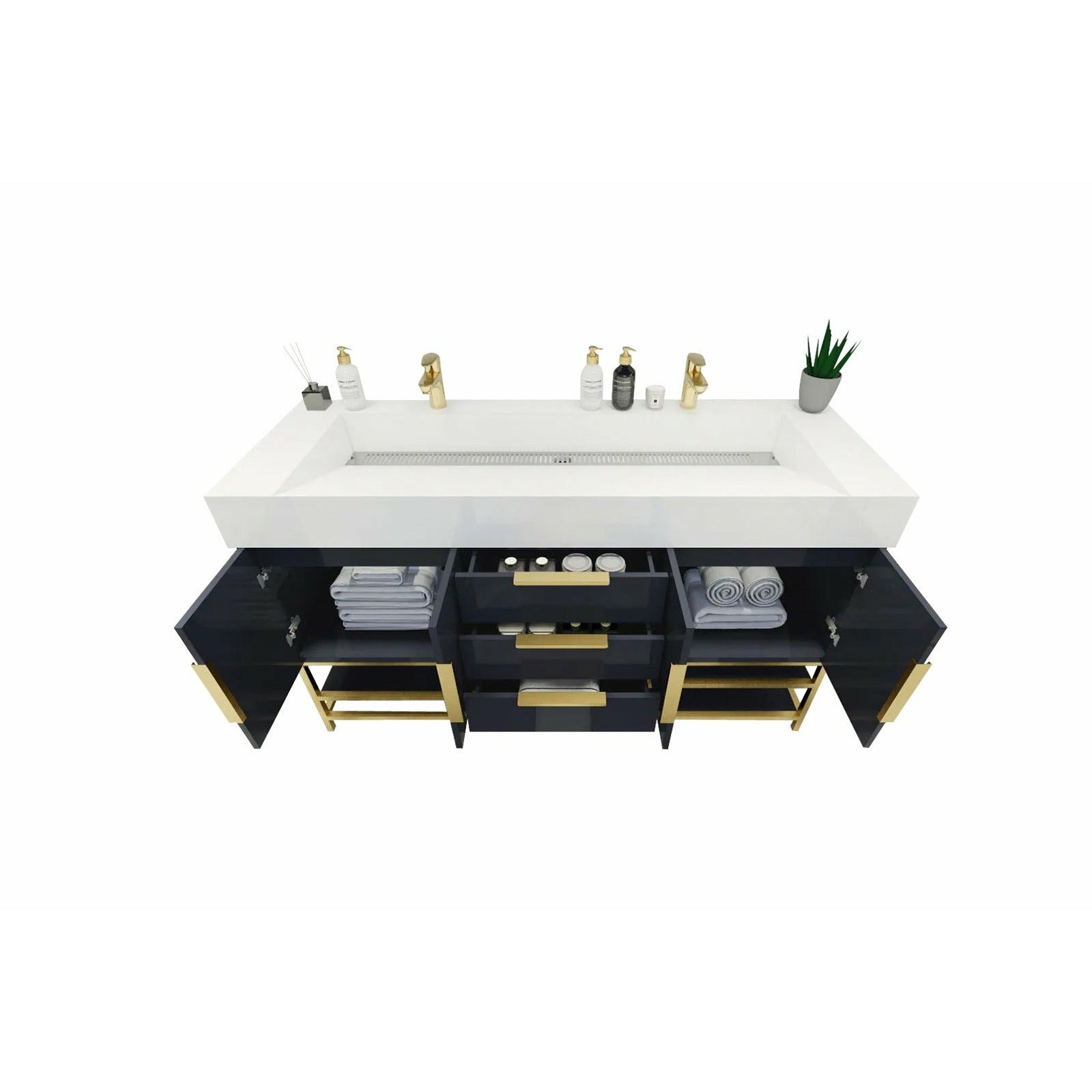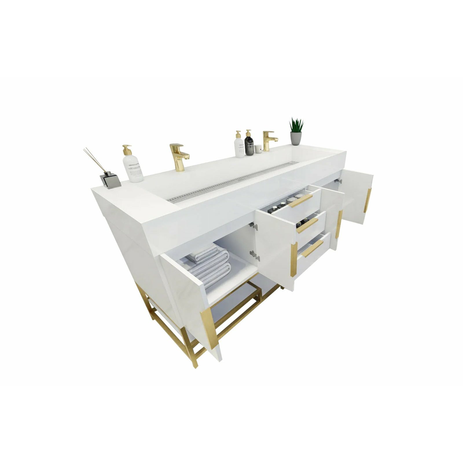 Introducing our Boreal Free-Standing vanity collection which is distinguished by its special aluminum alloy frame, providing both stability and a cool metallic accent that complements its elegant wood finish. The open shelf at the bottom provides additional space for towels and other bath items, making the vanity both practical and visually appealing. Now available with hardware options in black or classic metal to match your style preference, the Boreal free-standing vanity is perfect for adding a touch of luxury and functionality to your contemporary bathroom.