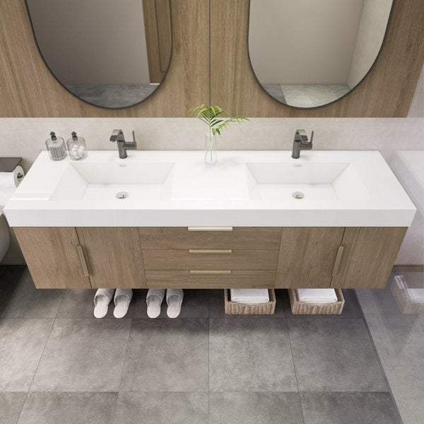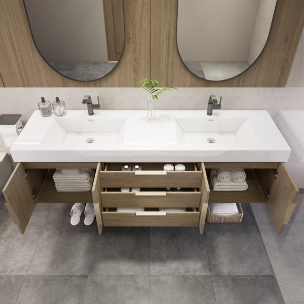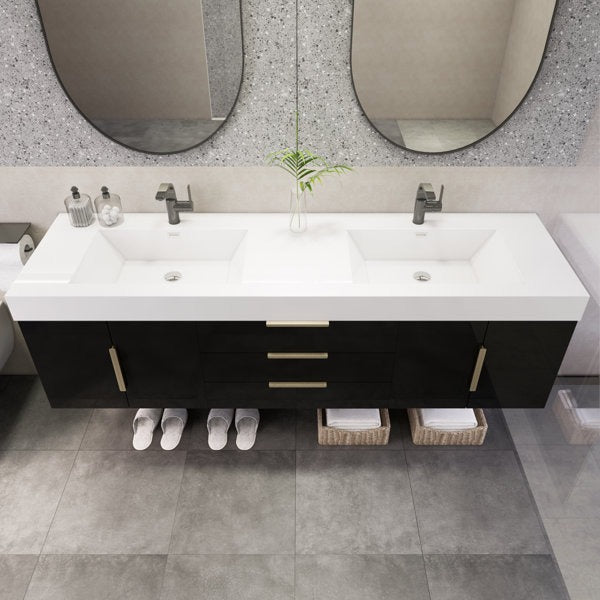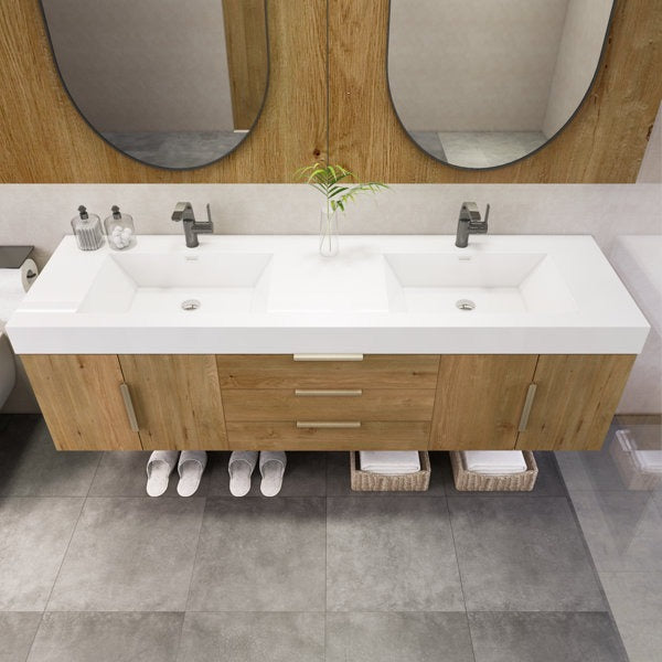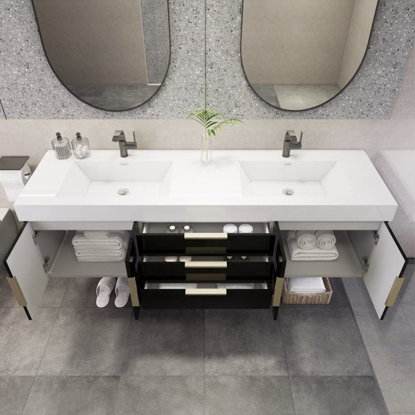 Boreal 72" Double Sink Floating Bathroom Vanity (Middle Drawers)