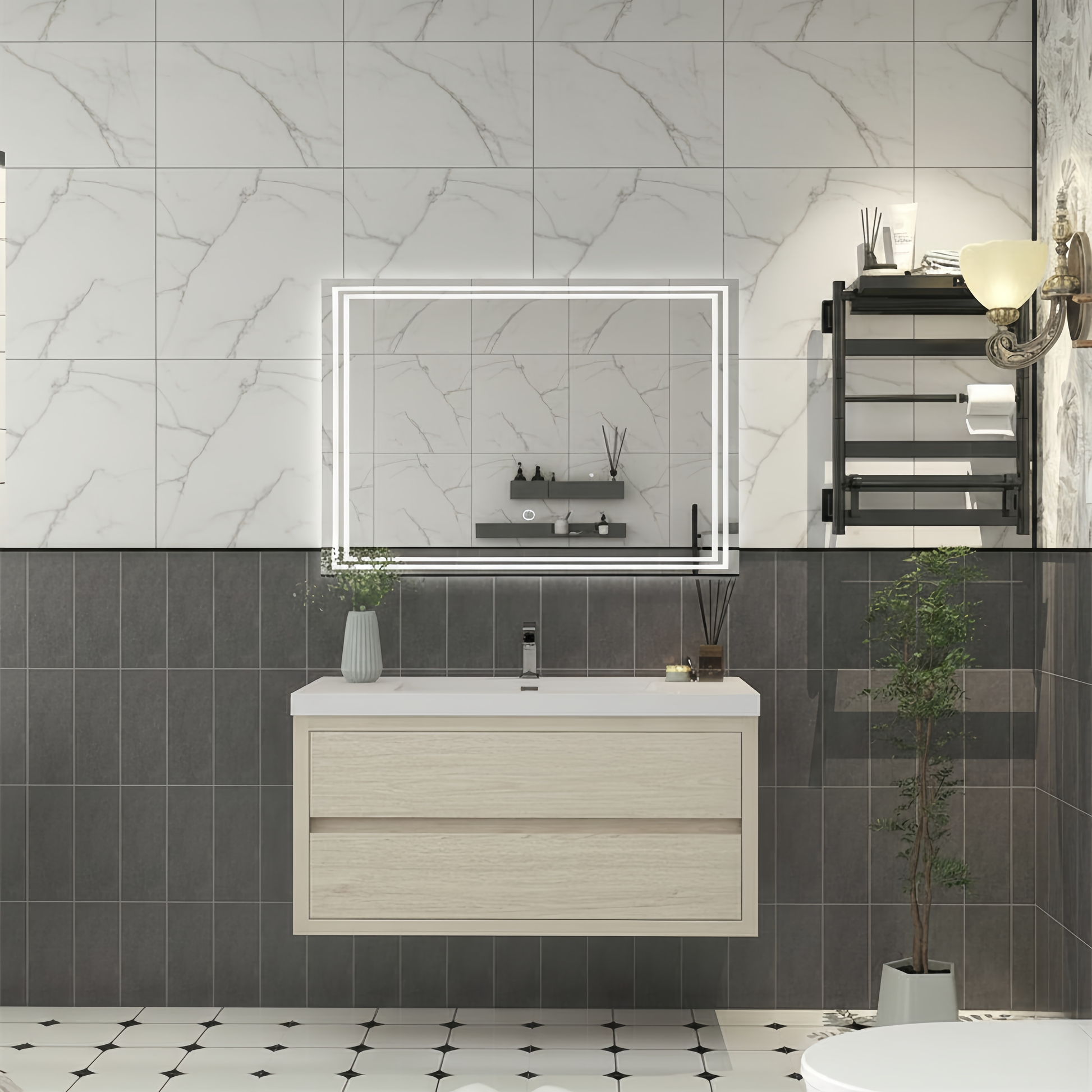 Offered in both single and double-sink options, this vanity set is crafted with European soft-close doors and drawers, double-reinforced acrylic sinks, and a sturdy natural wood cabinet for long-lasting durability. Our Elysia collection is a statement piece that would elevate the look and feel of your modern bathroom.