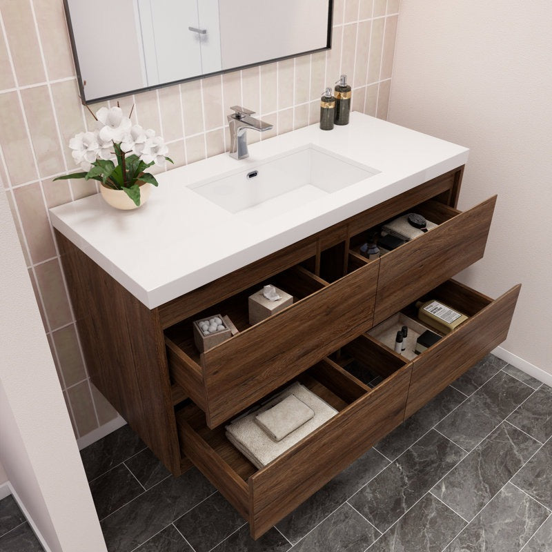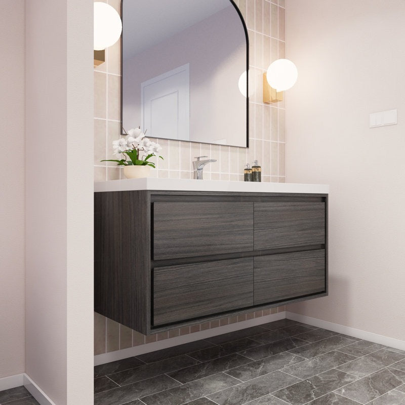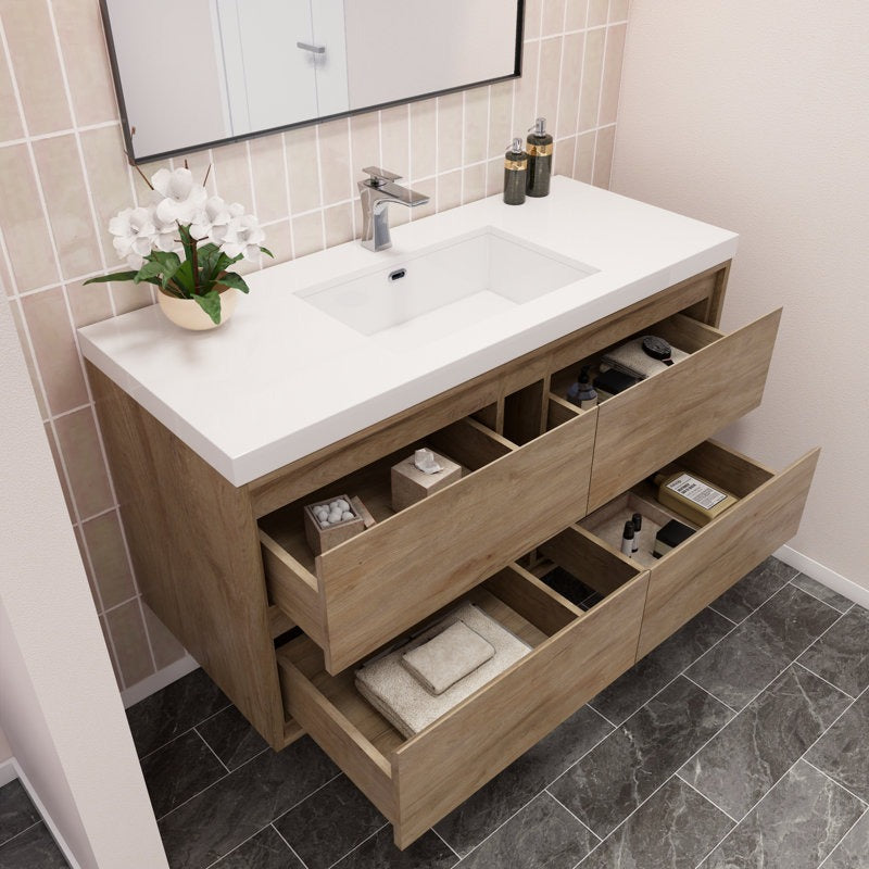 Crafted from beautiful oak wood that brings a warm, organic feel to the space, our Erba collection is a statement piece that would elevate the look and feel of your modern bathroom. The clean lines and flat-panel design showcase a minimalist aesthetic while offering large storage with two drawers. All drawers are equipped with European soft-close hardware that reduces the noise and wear and tear on the cabinet.