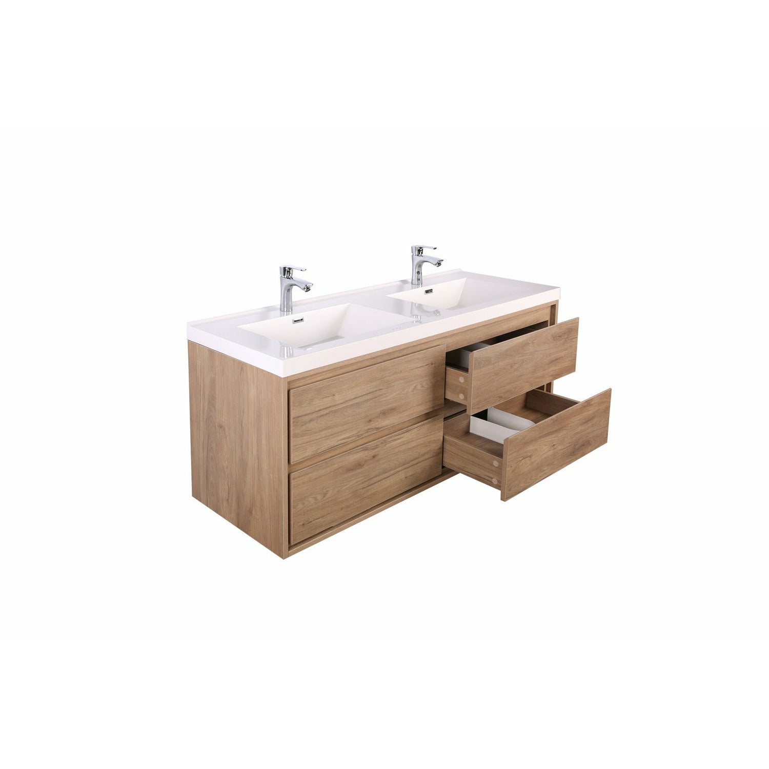 Crafted from beautiful oak wood that brings a warm, organic feel to the space, our Erba collection is a statement piece that would elevate the look and feel of your modern bathroom. The clean lines and flat-panel design showcase a minimalist aesthetic while offering large storage with two drawers. All drawers are equipped with European soft-close hardware that reduces the noise and wear and tear on the cabinet.