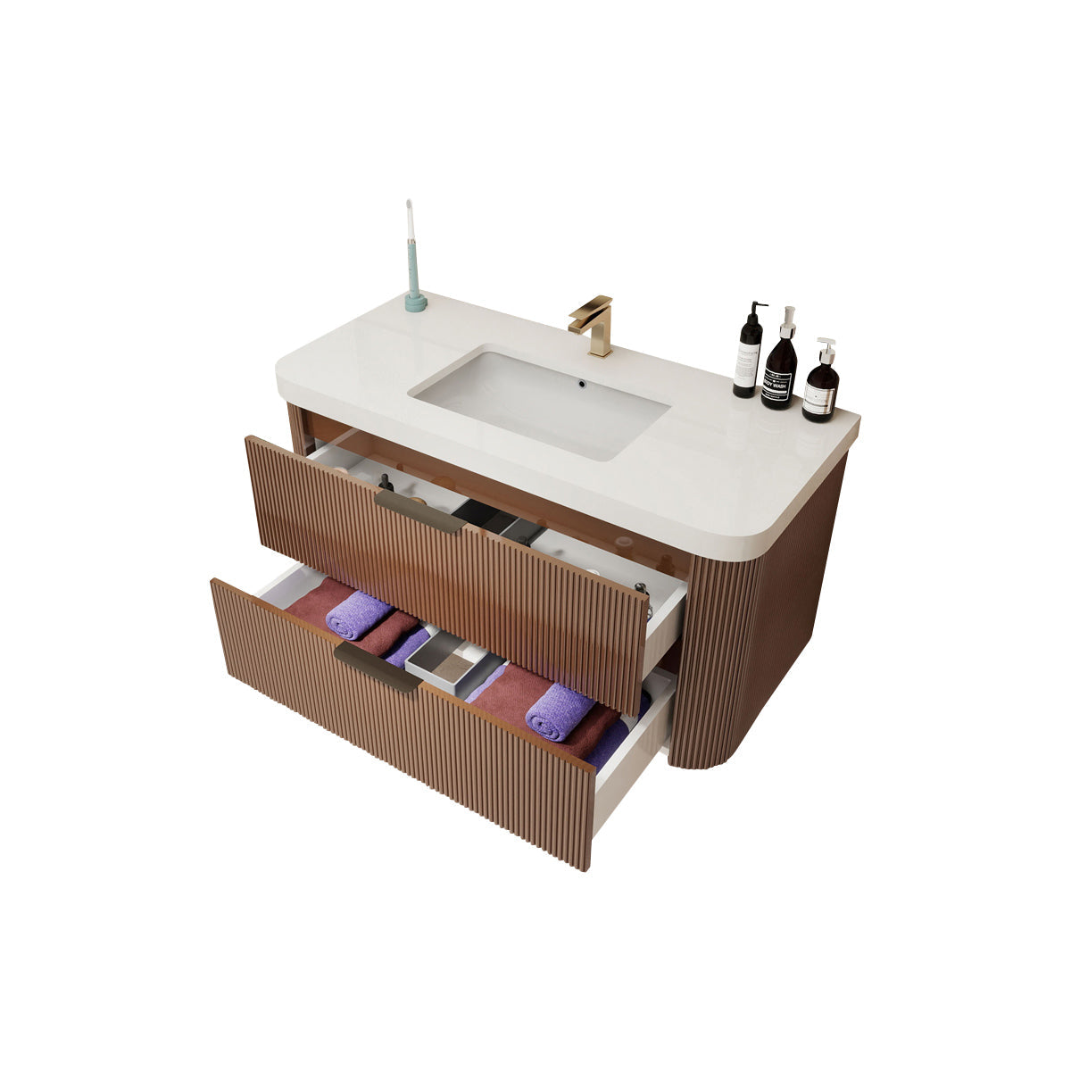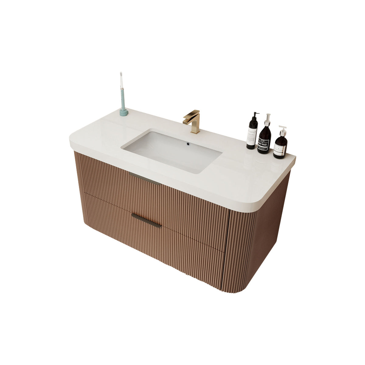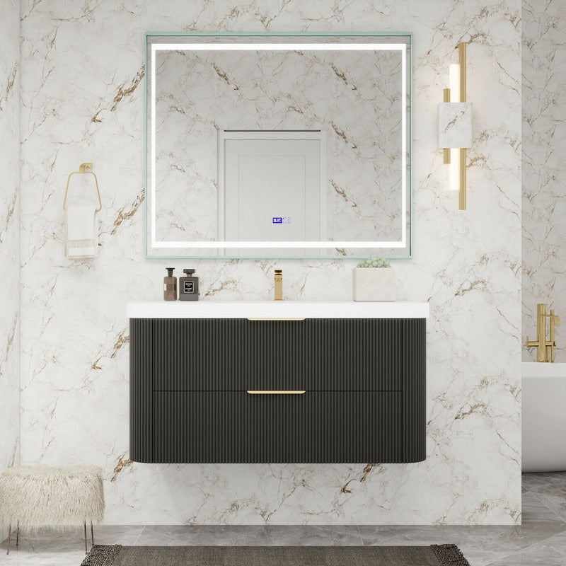 Haven Fluted 42" Floating Vanity | Modern Curved Wall-Hung Cabinet