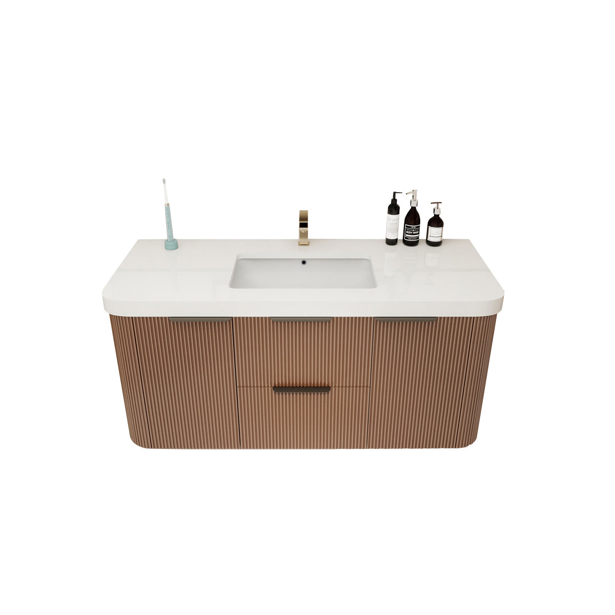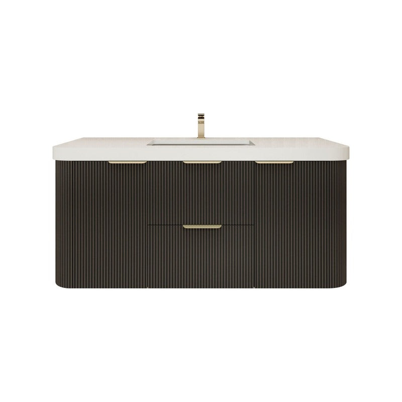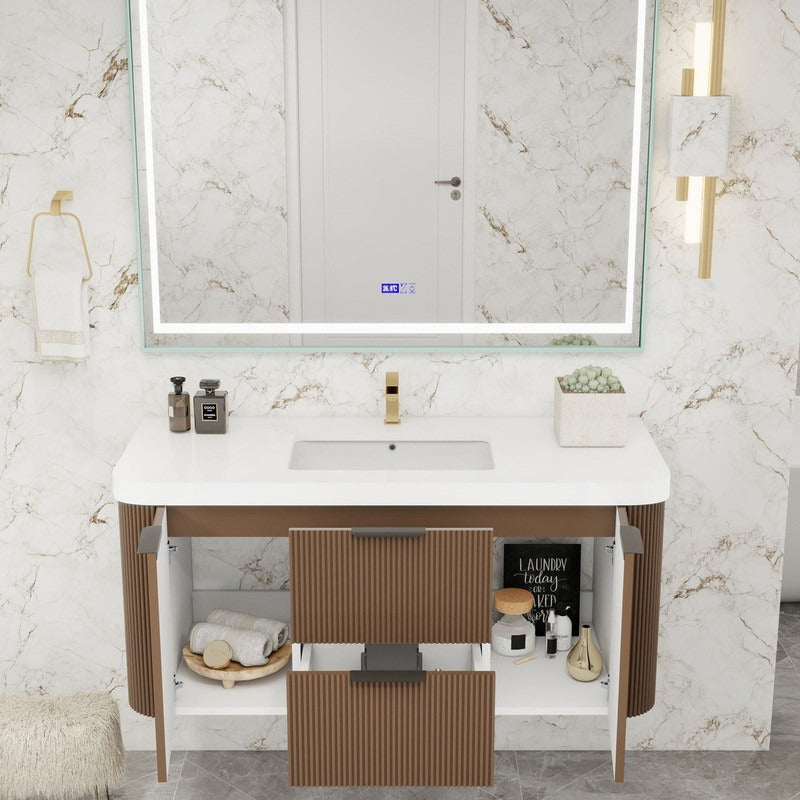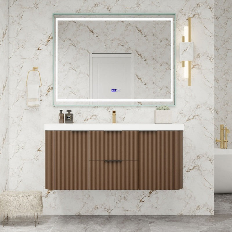 Haven Fluted 48" Floating Vanity | Modern Curved Wall-Hung Cabinet