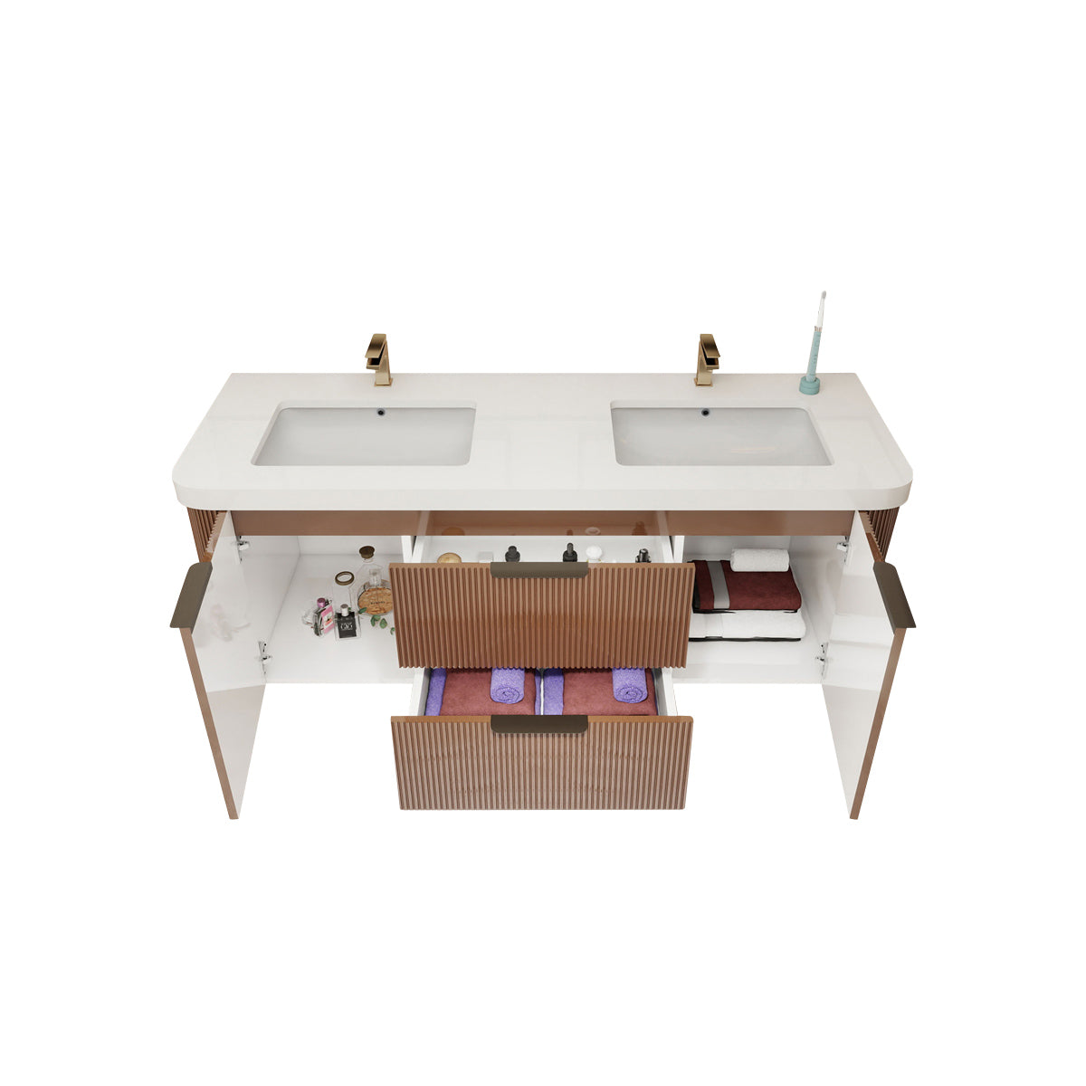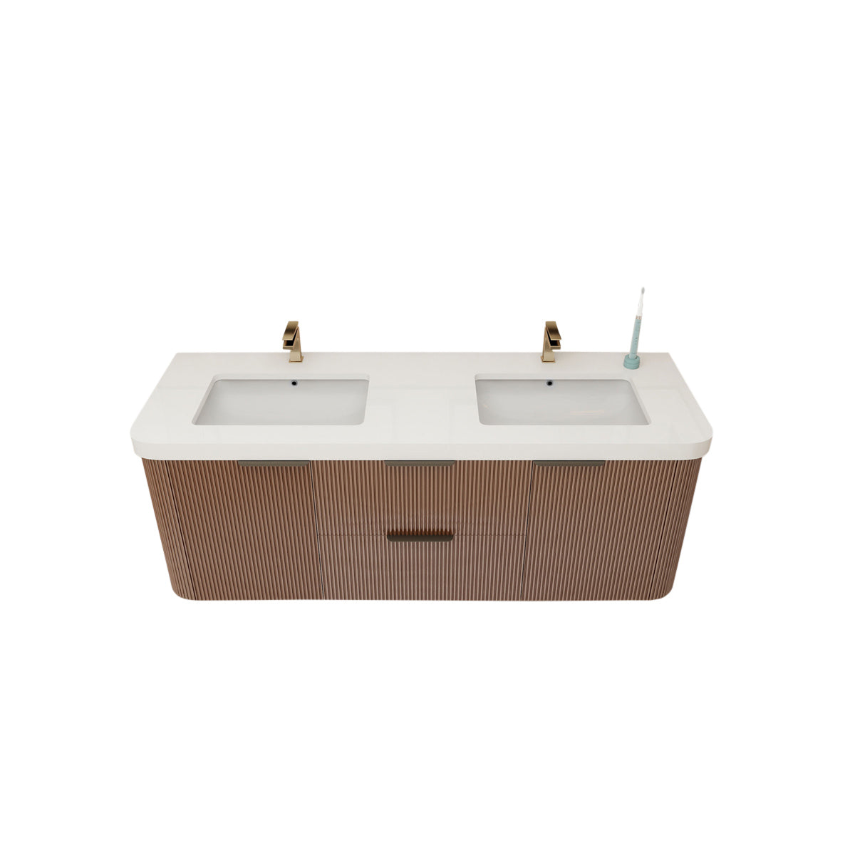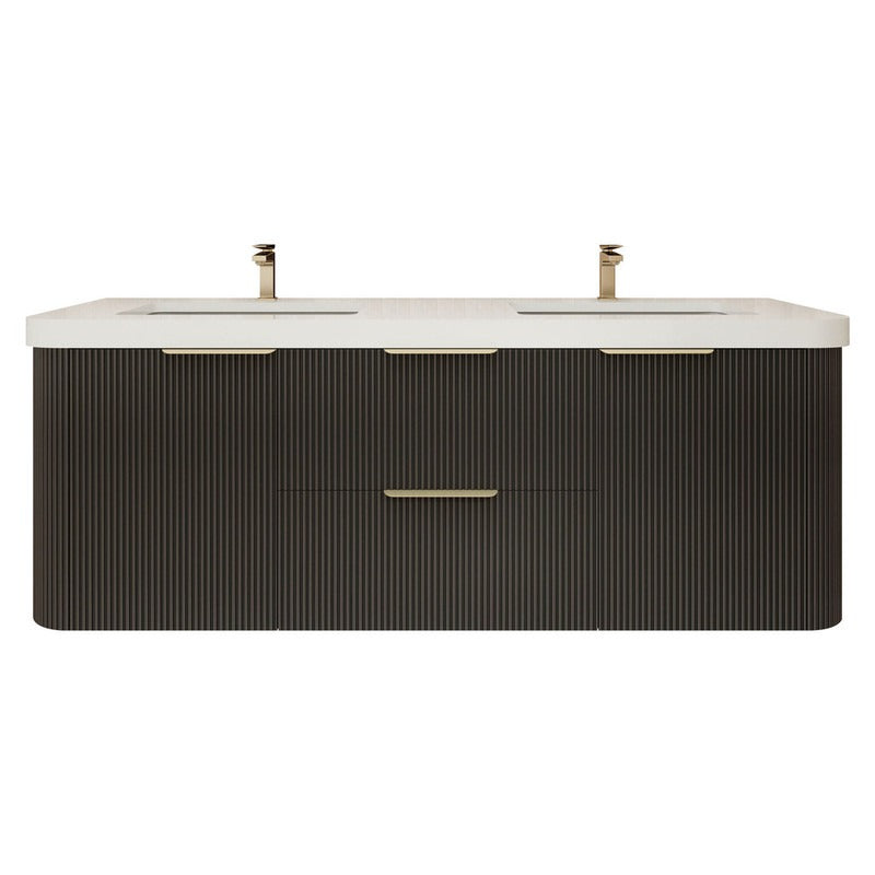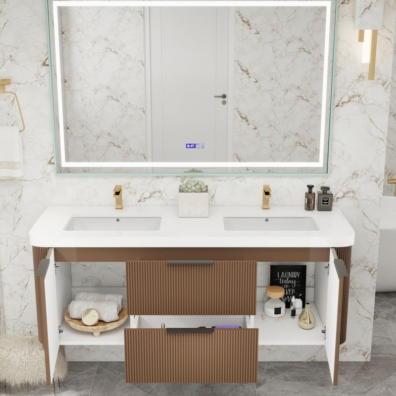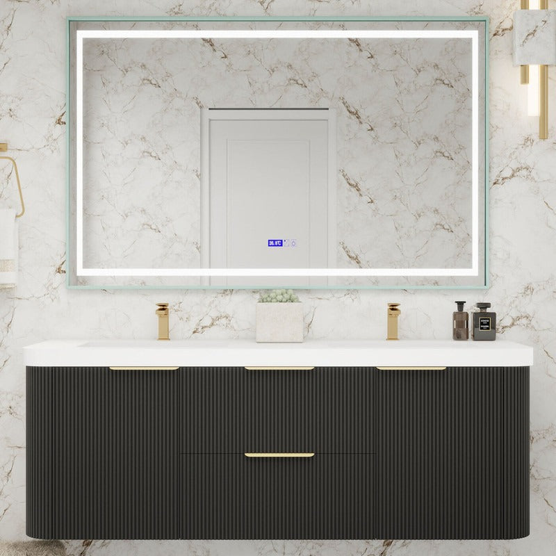 Haven Fluted 60" Double Sinks Floating Vanity | Modern Curved Wall-Hung Cabinet