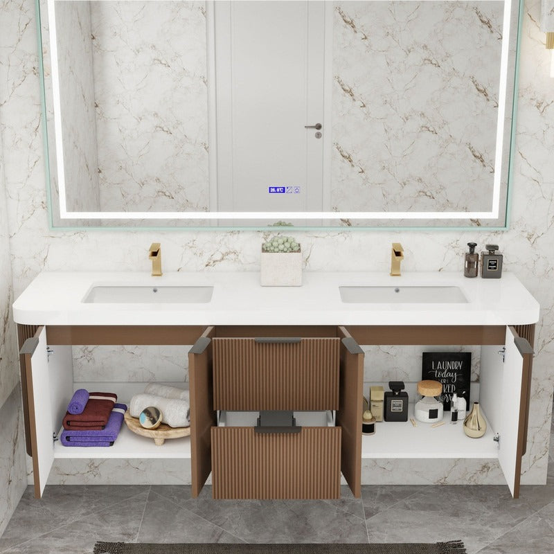 Haven Fluted 72" Double Sinks Floating Vanity | Modern Curved Wall-Hung Cabinet