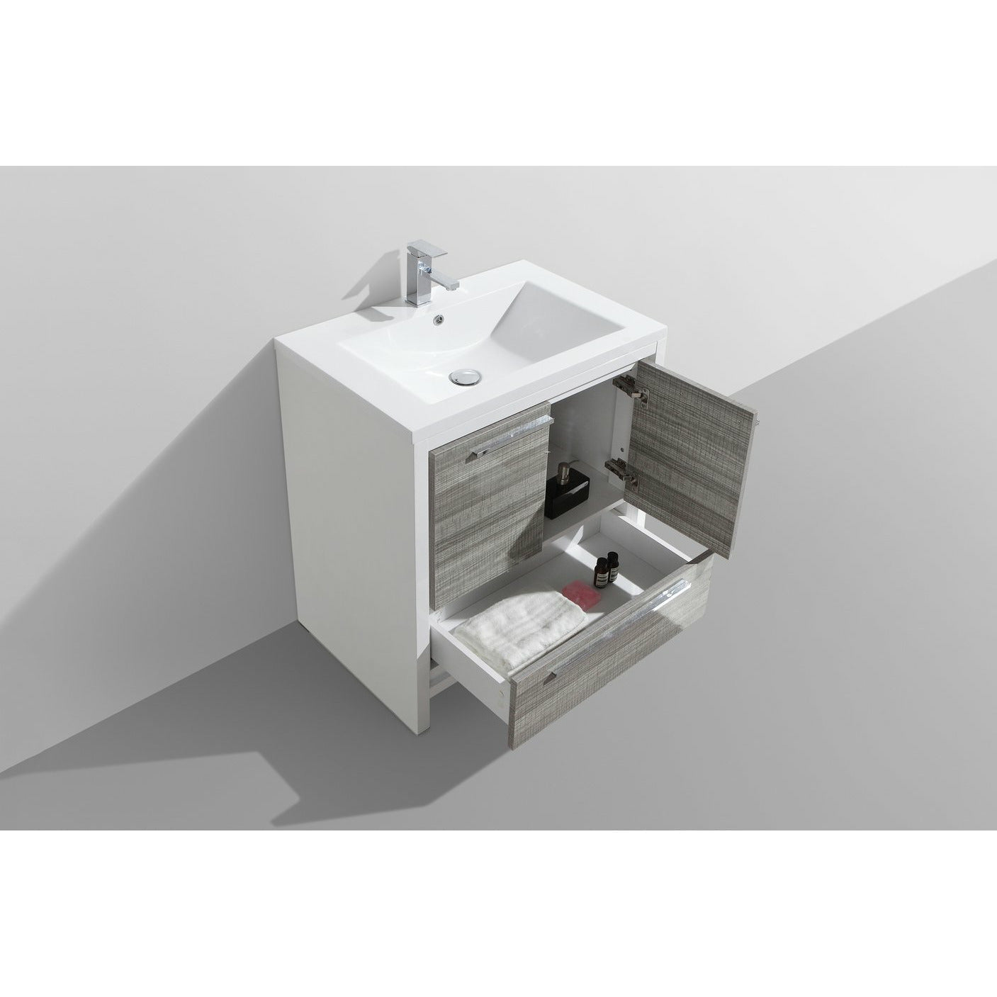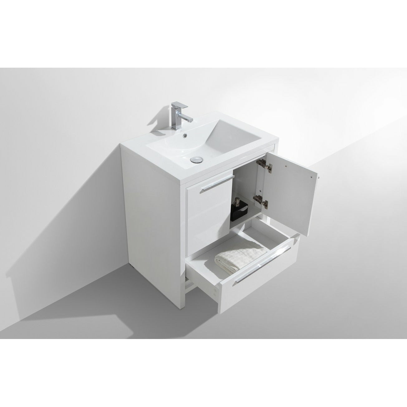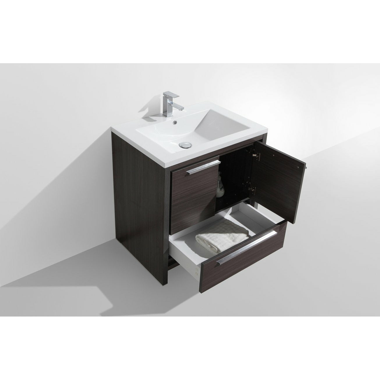 Discover the charm of our classic Lucia Freestanding Vanity. The vanity is characterized by clean lines and minimalistic brushed nickel drawer pulls, making it a perfect match for both traditional and transitional bathroom decors. This vanity features a blend of classic design and functionality, helping you to easily store bathroom essentials and cleaning supplies in one double-door cabinet and a functional drawer. Its sleek layout and wood finish add a touch of elegance to your bathroom.