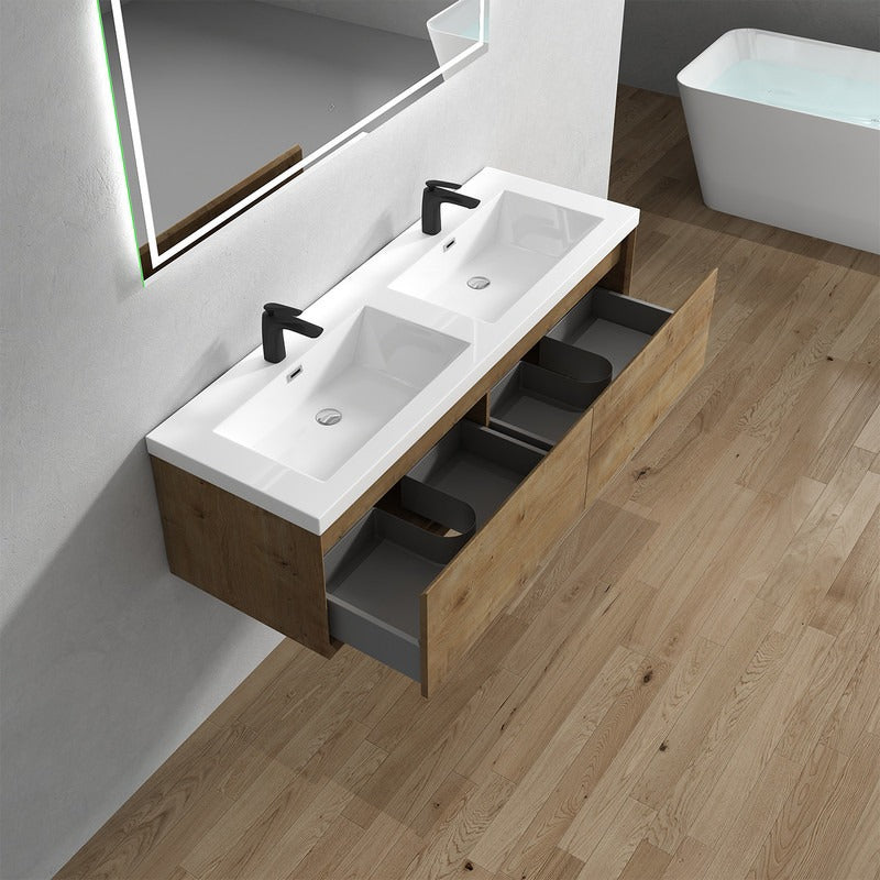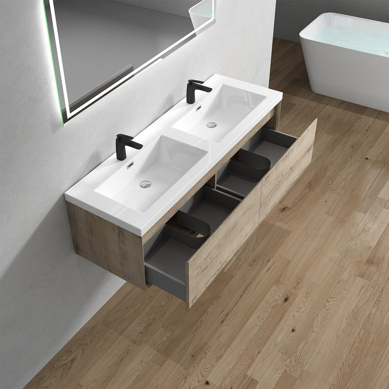 Nordic 60” Double Sink Floating Bathroom Vanity
