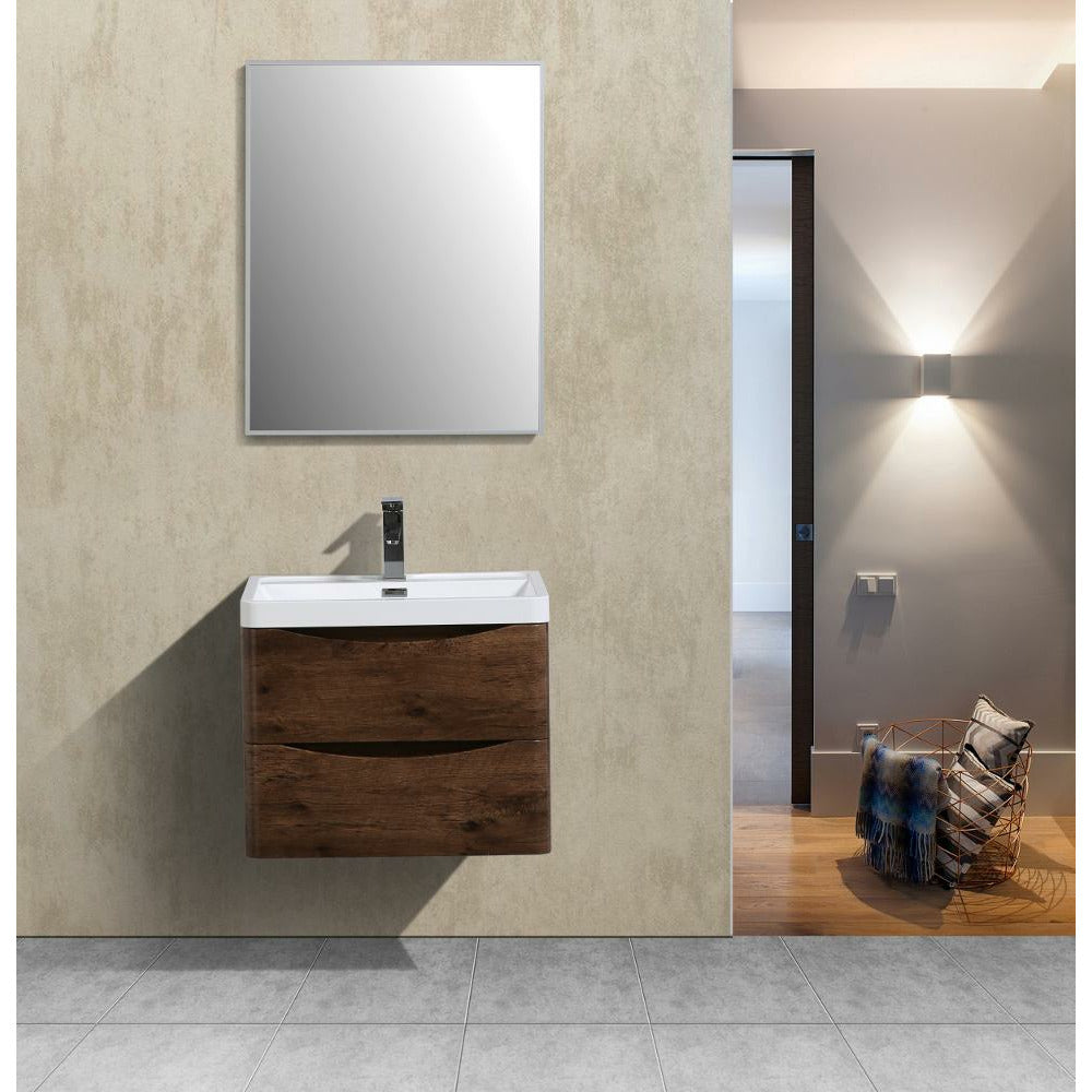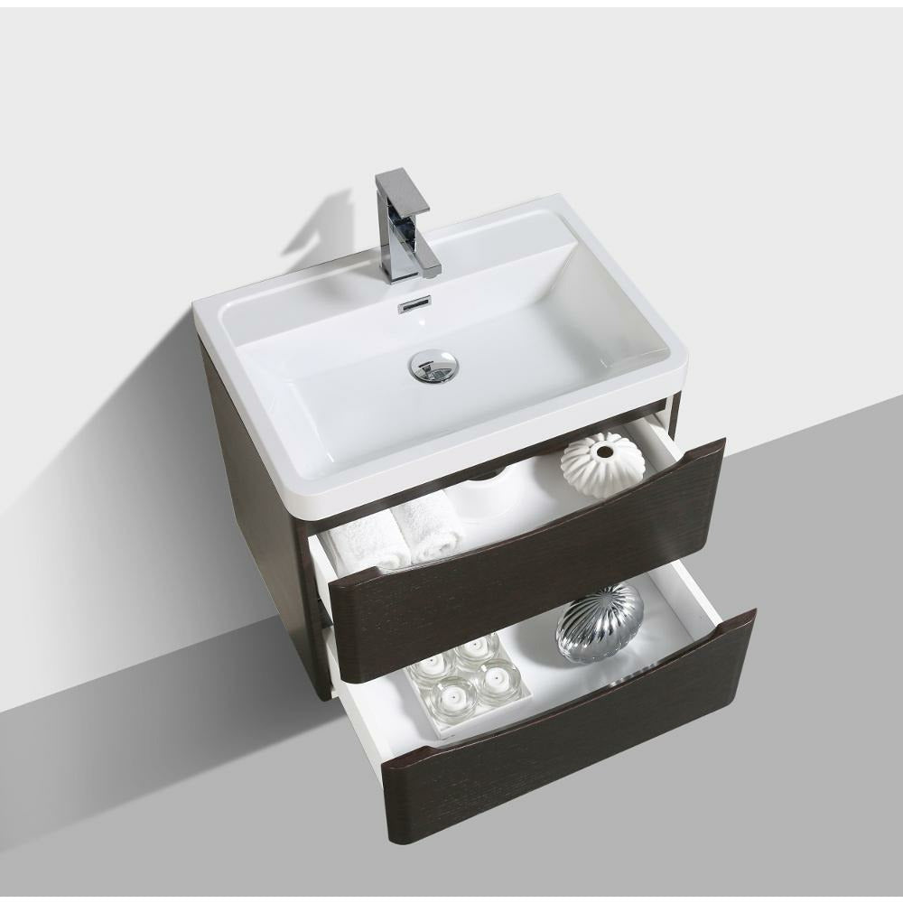 With its smooth, handle-free drawers, our wall-mounted Savoy vanity collection offers your main or guest bathroom a modern style. Featuring a unique curved handle that is seamlessly integrated into its sleek form, the two soft-close drawers with safety stops keep your fingers from getting caught. Plus, the floating design saves more space for you, so your floor can hold storage baskets for extra towels and toilet paper. Best of all, this vanity arrives fully assembled and ready to install.